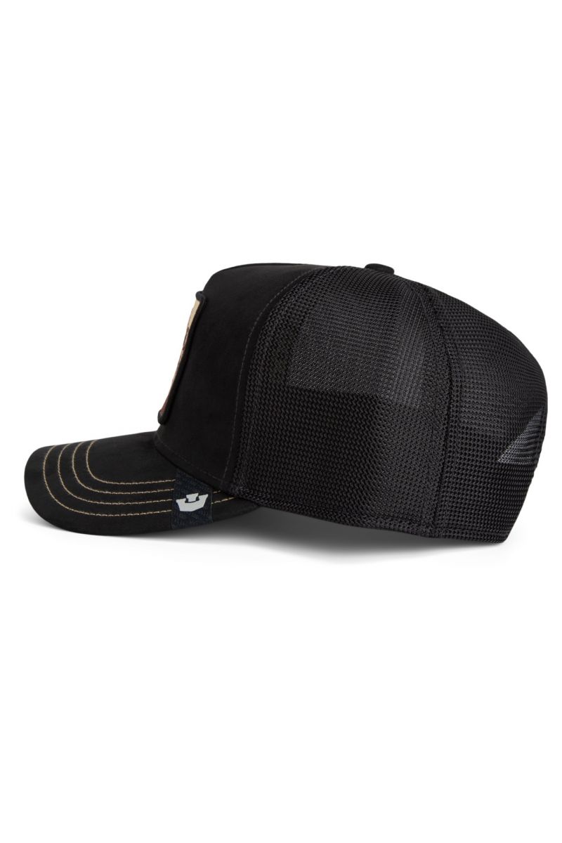 A sapka mélyfekete színben kapható, strukturált előlappal, arany kerettel és hátul fekete hálós betéttel az optimális légáramlás érdekében. Az ívelt csúcs kontrasztos díszvarrással tökéletes utcai viseleti megjelenést kölcsönöz. A patentzár rugalmas illeszkedést biztosít – akár a városi dzsungelben, akár a reflektorfényben.